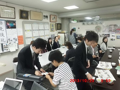最初に、 杉四カンパニーの社長の評価委員の方々と名刺交換から
