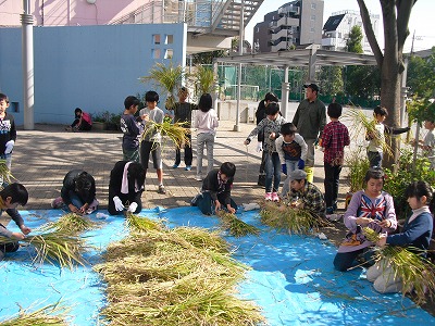 杉四小の理科園内の田んぼで育ててきた稲が実り、