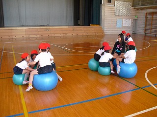 友達と手をつないでもボールから落ちないグループもあり、びっくりしました。