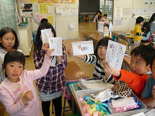 生活科「ふゆのしたくをしよう」で、年賀状の下書きを画用紙に書きました。