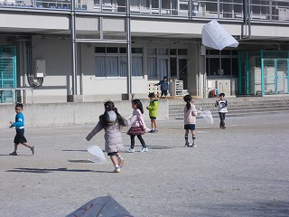 どうすれば上手に、風車を回したり、凧を揚げられるか、みんな工夫していました。