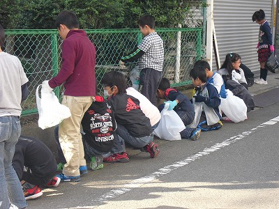 軍手をして、ゴミ用の袋を手に、ごみを拾い集めました。