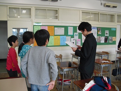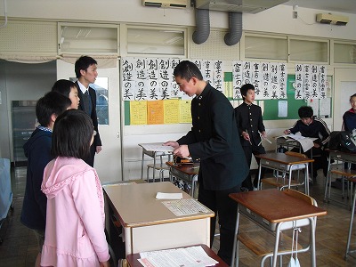 この1年間の、高円寺中学校での生活でたくさんの人と出会いお世話になりました。校舎内で出会うと、いつも中学生から「おはようございます。」と声をかけてくれました。わくわくフェスティバルでは、総合的な学習の時間で学んだことについての素晴らしい発表と、素敵な合唱を聴かせていただきました。中学3年生へこれまでのお礼の気持ちとこれからの活躍を願って、クラスごとに色紙にメッセージを書いてお渡ししました。