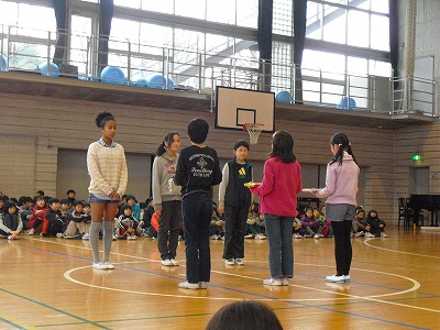 2月27日、6年生を送る会が行われました。5年生が中心となり計画や準備を進めてきました。5年生は出し物で 「We are the world」 を英語で歌いました。この歌は、世界中のみんなが仲良く幸せに過ごせることを願って作られました。この1年間、6年生が杉四小のために頑張ってくれたおかげで、下級生は安心して楽しく過ごすことができました。そのような6年生の姿を思い出しながら、心を込めて歌いました。
