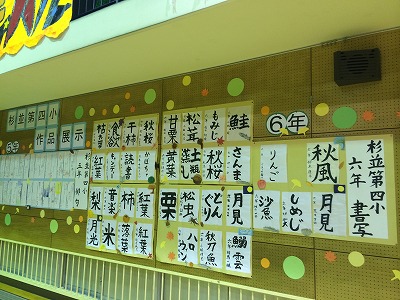 展示では、「秋といえば」というテーマでそれぞれの秋を書写で表現しました。