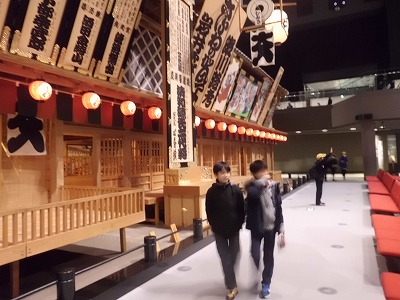 博物館の中は広く、昔の歌舞伎小屋などがありました。施設の大きさに子どもたちは驚いていました。
