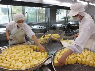こうして、手間暇をかけて、みなさんの食べる給食が届いています。