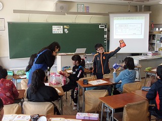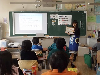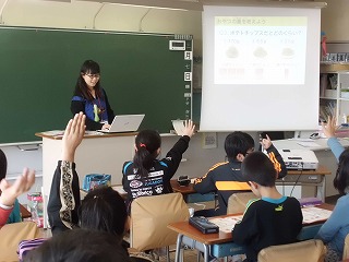 カルビー・スナックスクールの教材を使って、パワーポイントを活用した授業を行いました。