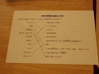 子どもたちには、「おうちの人にもおせち料理のいわれを教えてあげてね。」と