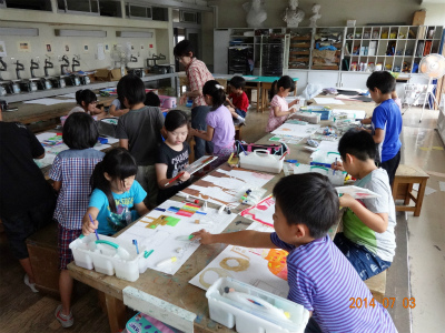 3年生の図工では90周年を祝う絵画の制作に取り組んでいます。