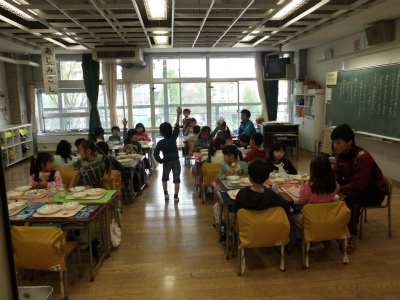 さらに、本年度は、中学校教員が低学年の給食清掃休み時間に
