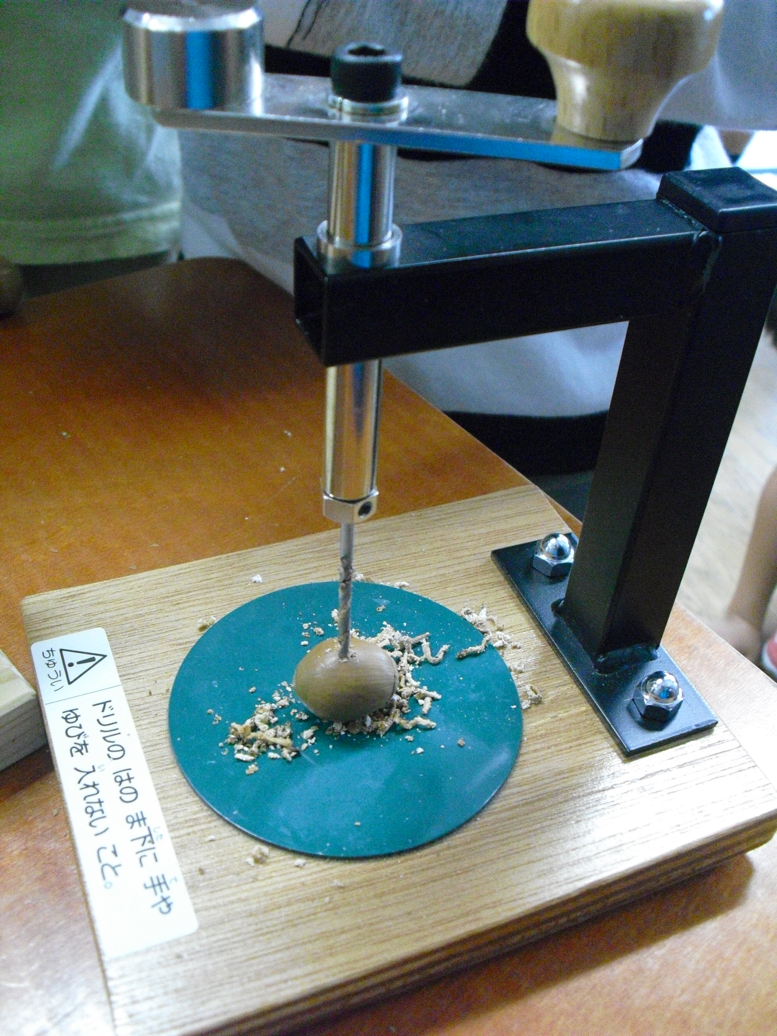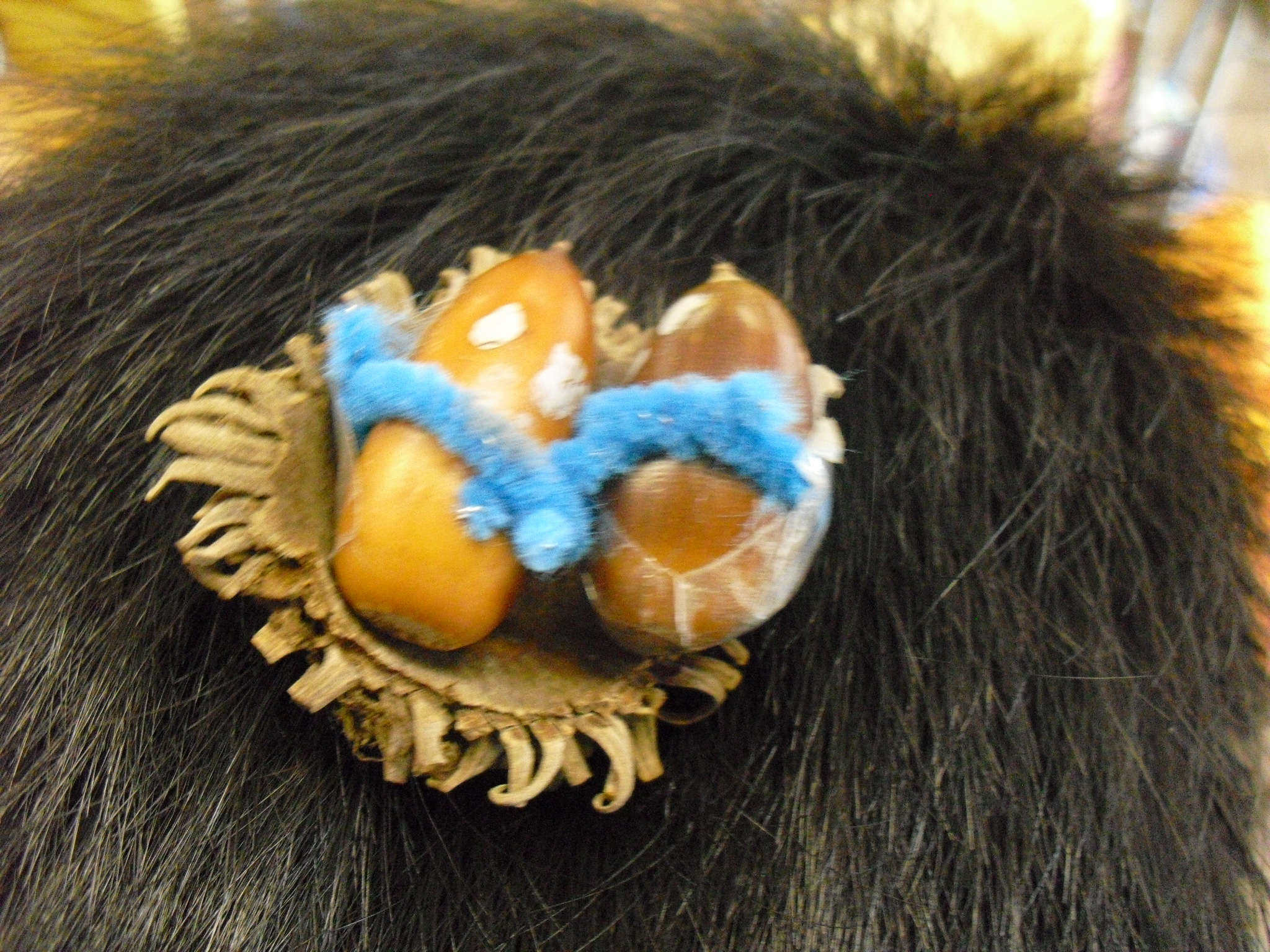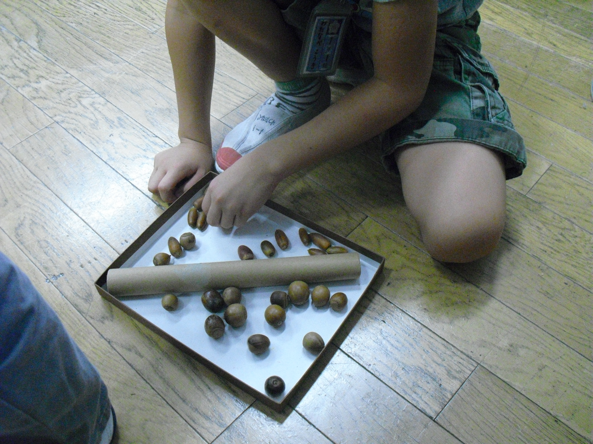 ちいさいどんぐり、おおきいいどんぐりをつかって、どんぐりコロコロを作っています