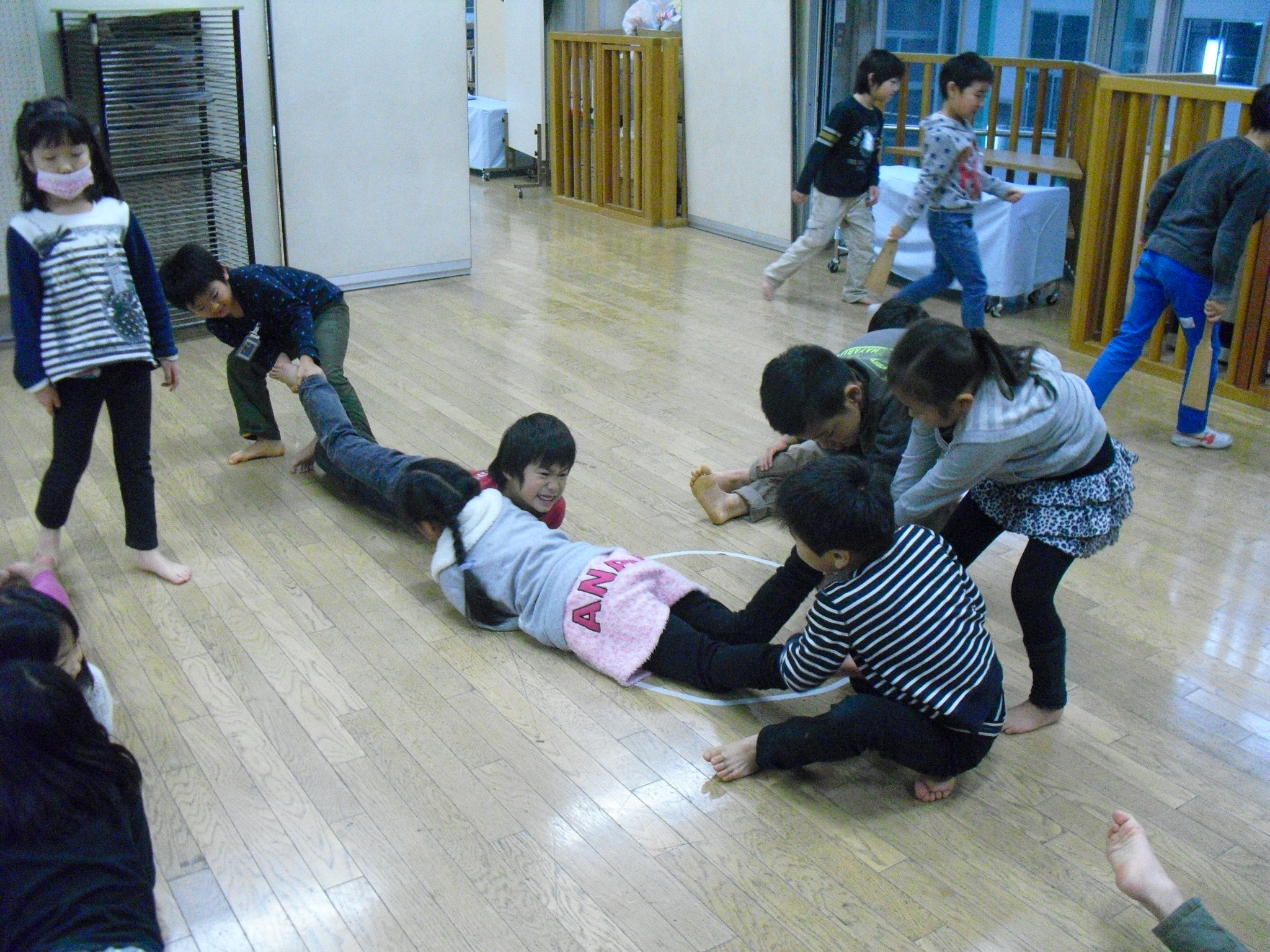 抜くほうも抜かれるほうも必死に頑張っています。(大根抜き遊び)