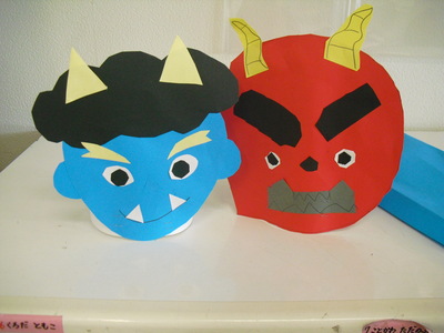 お面ができたら1人ひとり「追い出したい鬼」を発表し、最後は「鬼は外~!」といってみんなで鬼を追い払いました。