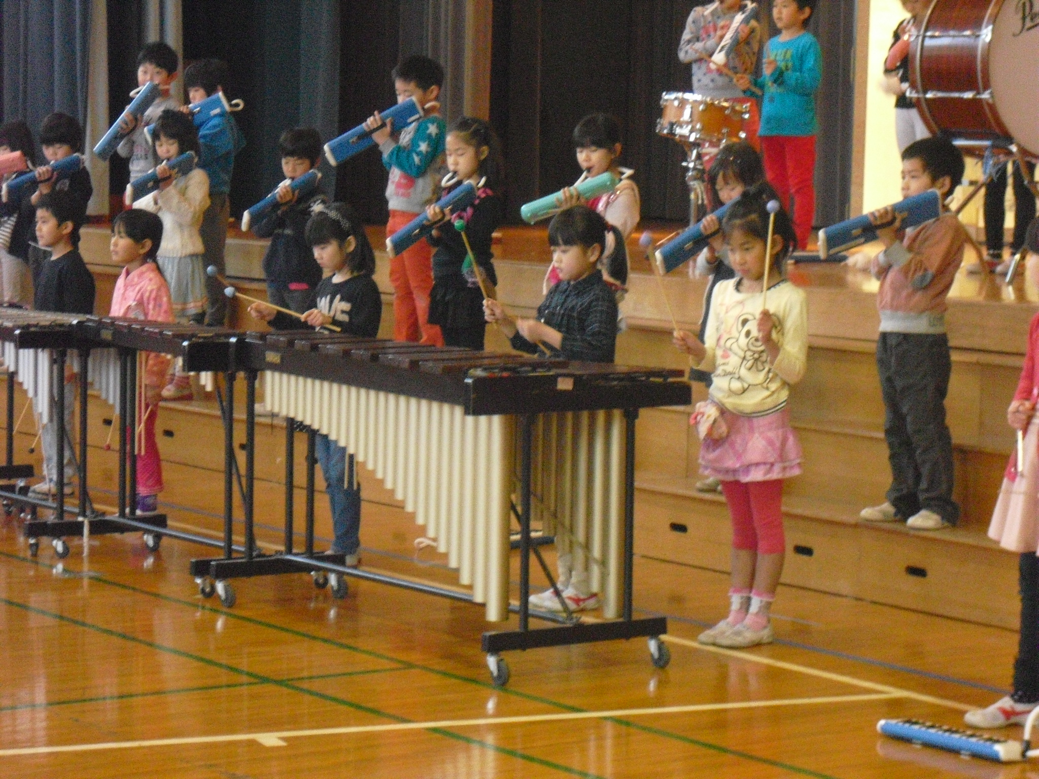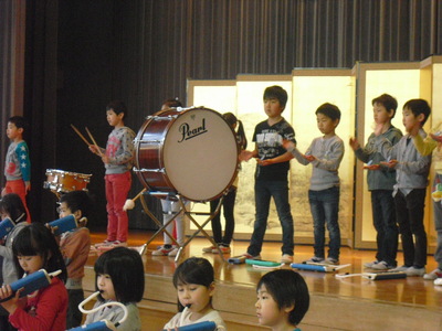 3月12日(木)今年最後の音楽朝会がありました。その最後の発表が1年生です。当日はたくさんの保護者の方々に来ていただきました。ありがとうございました。子どもたちは緊張しながらも、斉唱「ともだちになろうよ」と合奏「よろこびの歌」を発表しました。発表が終わった後は、どの子どもも満足した表情でした。今回の発表で自信がついたと思います。4月6日の入学式でも同じ曲を披露します。自信をもって入学式に臨んでほしいです。