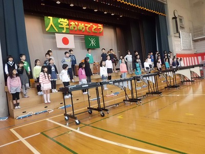 2年生と6年生が1年生のために校歌を歌ってくれました。