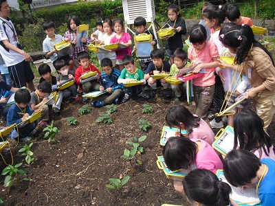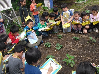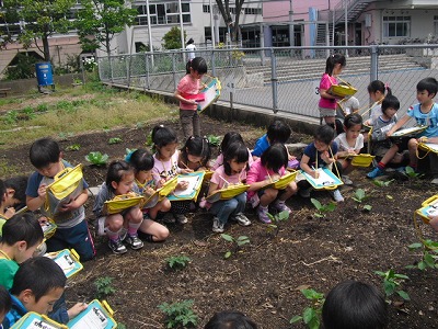 その後、学級園に行って植物の観察を行いました。