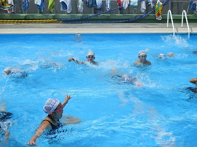 潜れるようになった子、長く泳げるようになった子、新しい泳ぎ方ができるようになった子、みんなで応援したり、喜びあったり仲良く取り組むことができました。