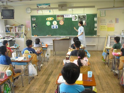 子どもたちは手を挙げ、とても真剣な表情でお話を聞いていました。