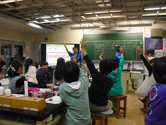 白熱灯では、電気の90%が熱となり光となるのはわずか10%という話を聞き、みんなおどろいていました。