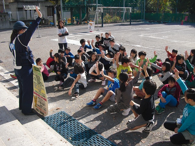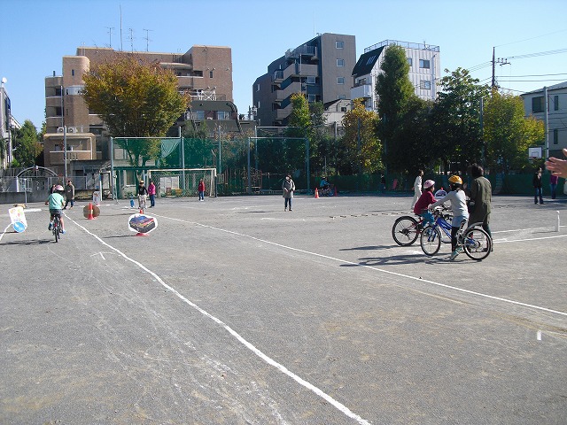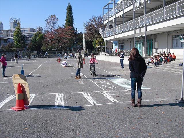 1学期雨天のため延期になっていた自転車安全利用講習会が本日ありました。昨夜の雨で校庭の状態が心配されましたが、あたたかい日ざしの中、実施することができました。まず杉並警察署の方より、自転車安全五則などの交通ルールについて指導していただきました。
