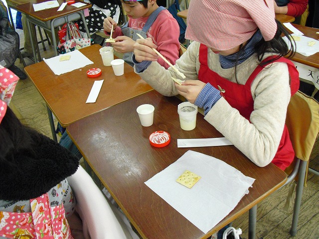 クッキーに自分で作ったバターをのせて、おいしくいただきました。