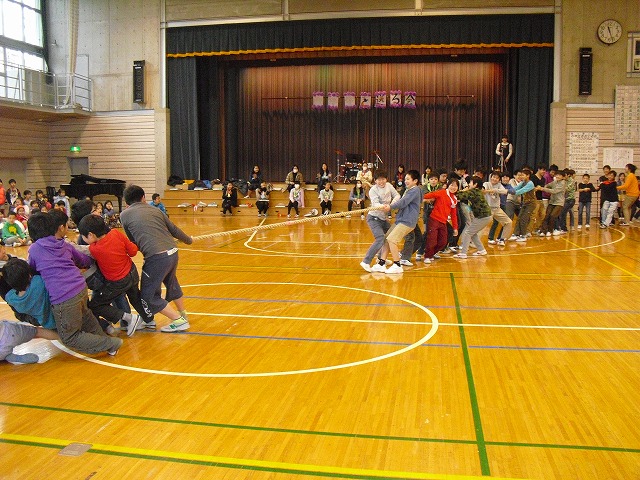 次は、男子の綱引きです。4年生も頑張りましたが、6年生のパワーには、力及びませんでした。