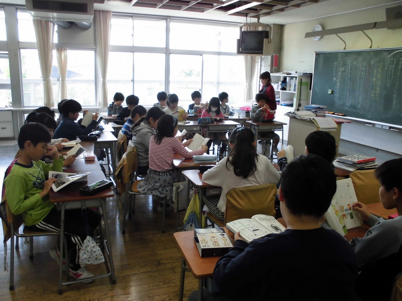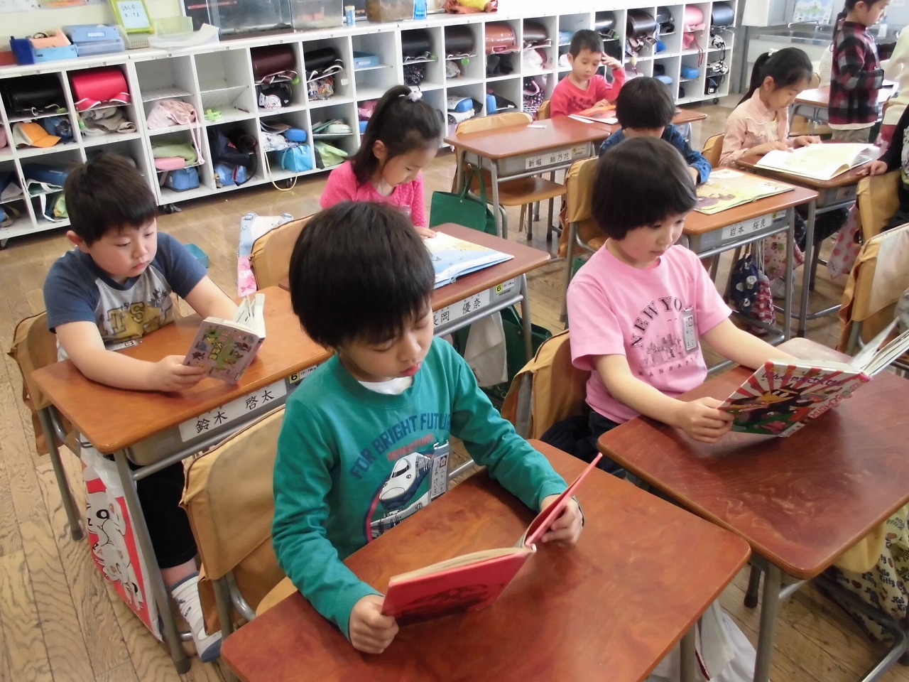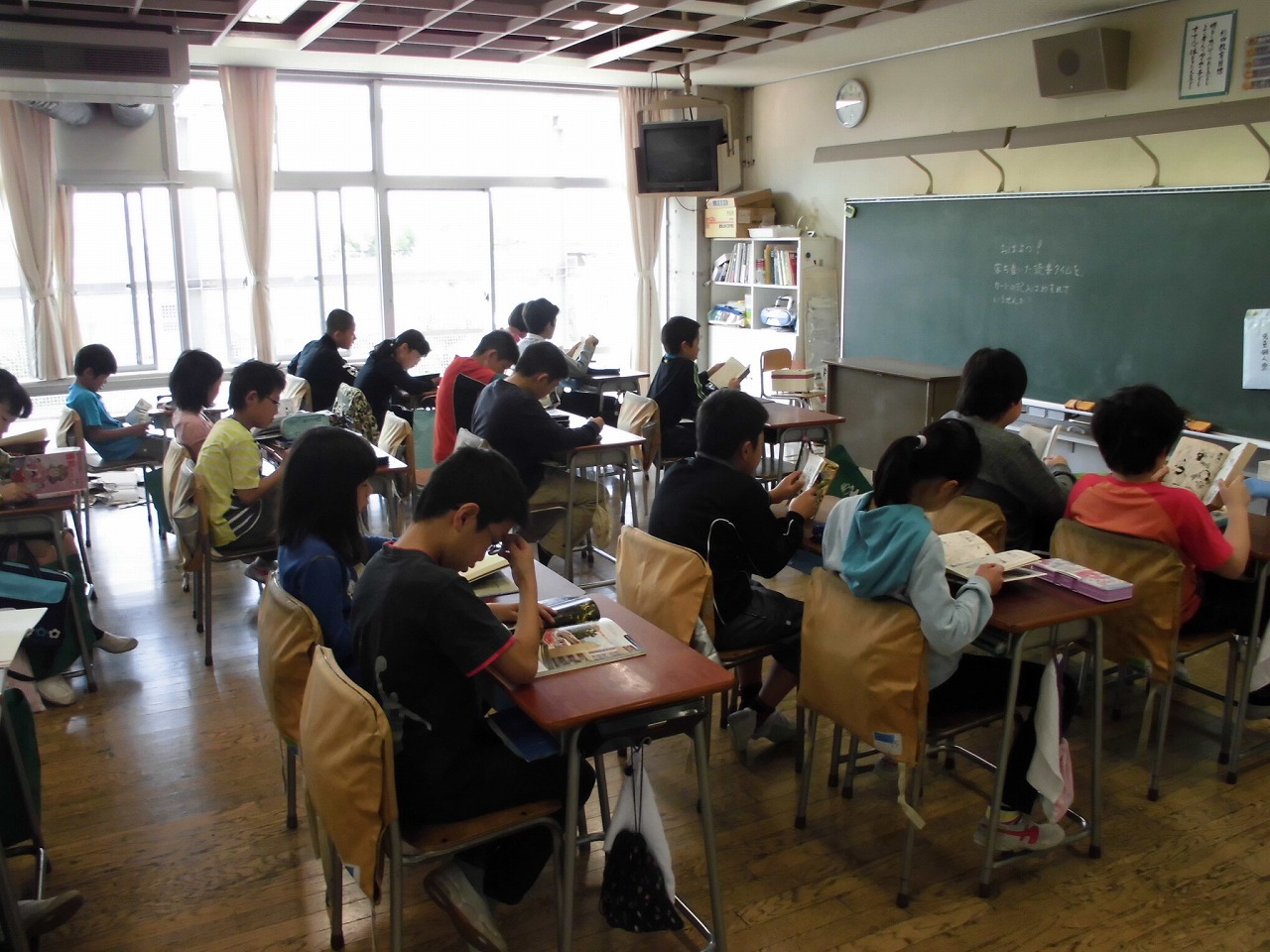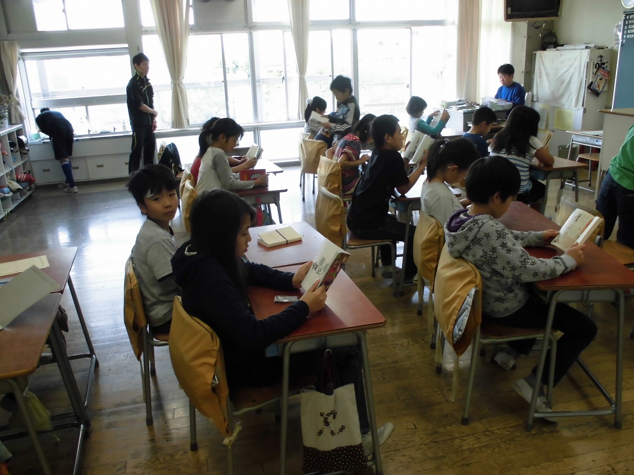 低学年は教員や図書ボランティアの方が来て読み聞かせをしていたり、自席で読書をしていました。