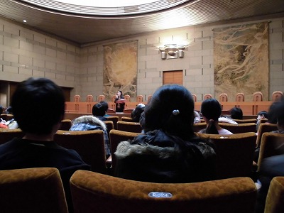 実際に大法廷の椅子に座って、裁判について様々な話を聞きました。