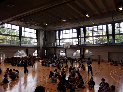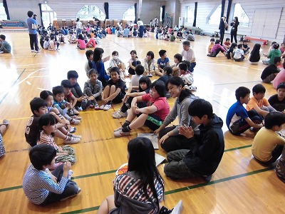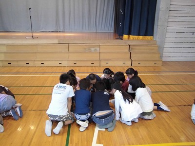 初めて縦割り班で集まったので、みんなで自己紹介をしています。