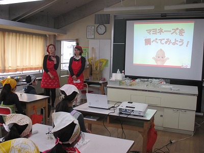 キューピーの方に来ていただき、マヨネーズの作りかた、マヨネーズのひみつを学習しました。