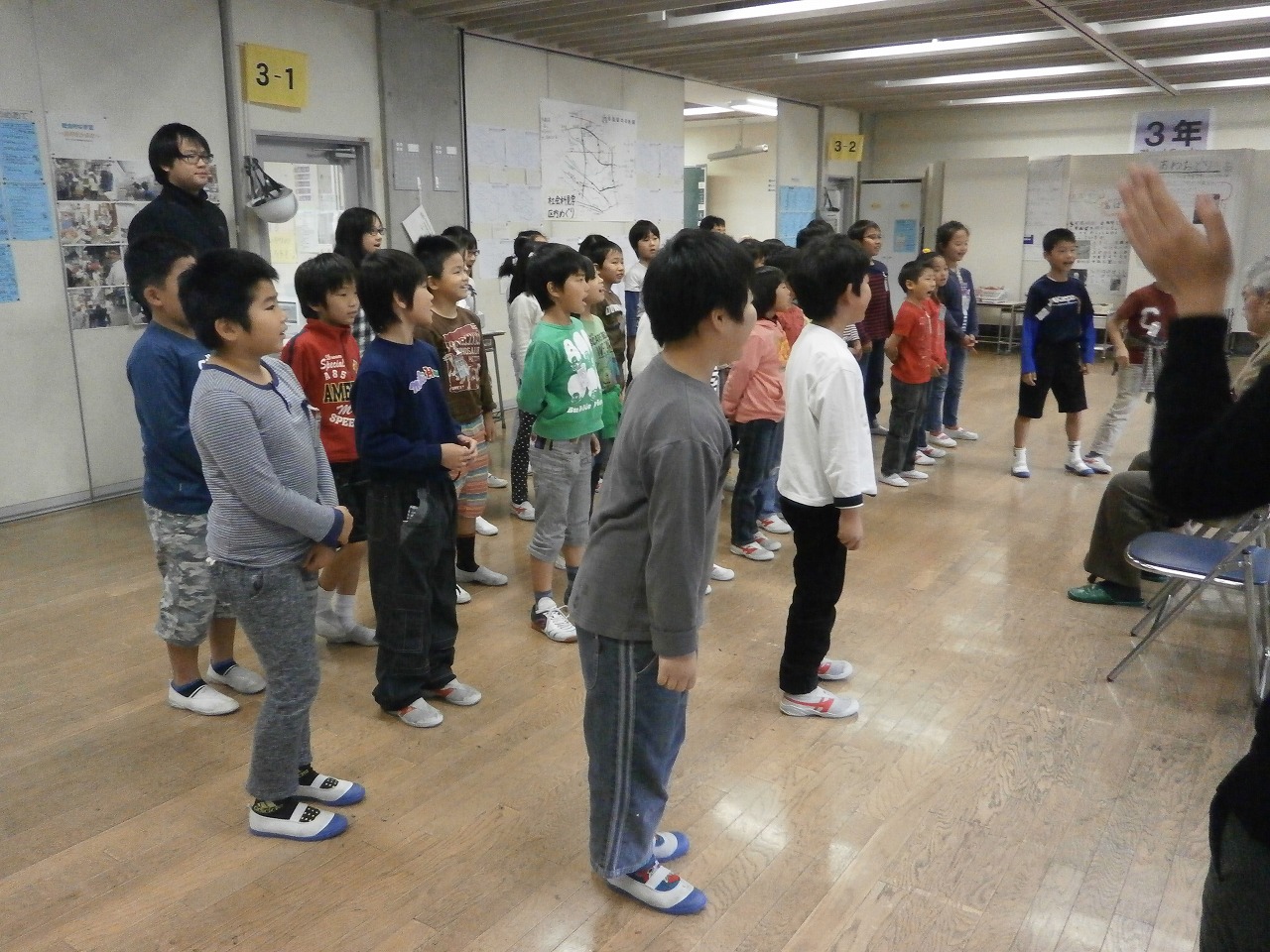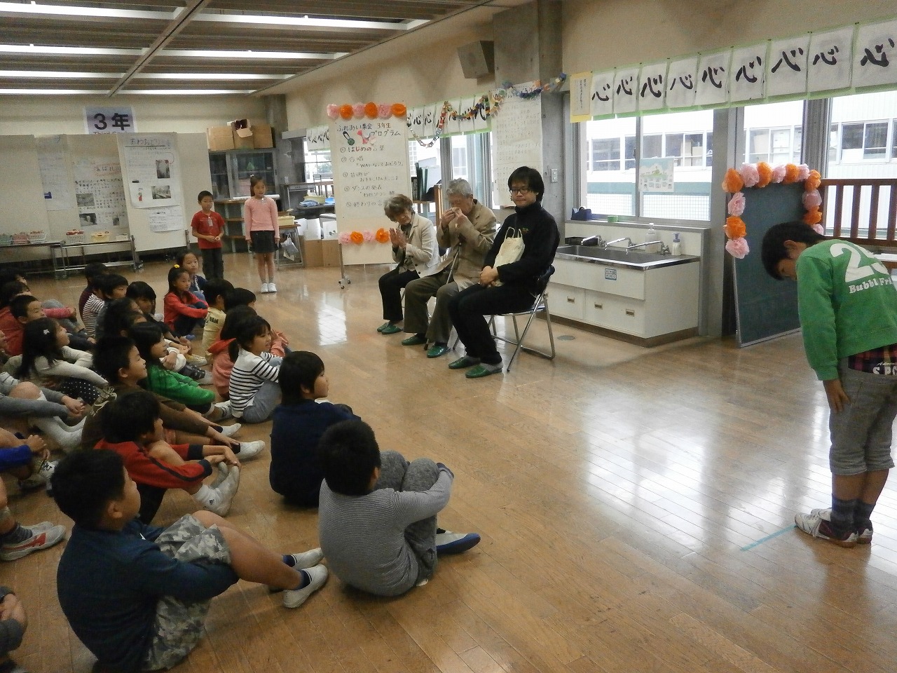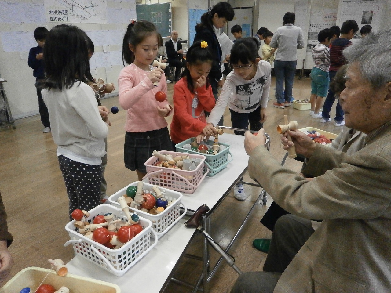 3年生は、高齢の方を講師に招き、昔の道具や昔遊びを教えていただきました。