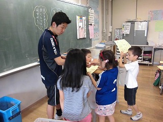 歯磨きが終わったら、担任の先生からシールをもらいます。今日はどんなシールかな?