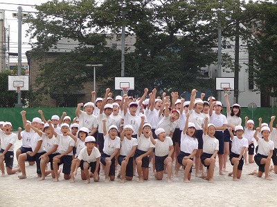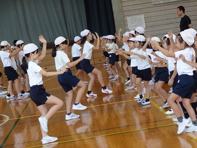 江戸っ子連のみなさんに教えていただき、その後5年生は、子供園と2年生と阿波おどりの交流をしました。