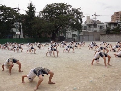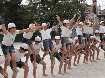 5年生は、6年生と一緒に組体操の練習をがんばっています。