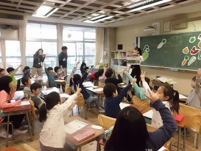 1月22日(木)2校時に2年1組、3校時に2年2組で食育授業を行いました。