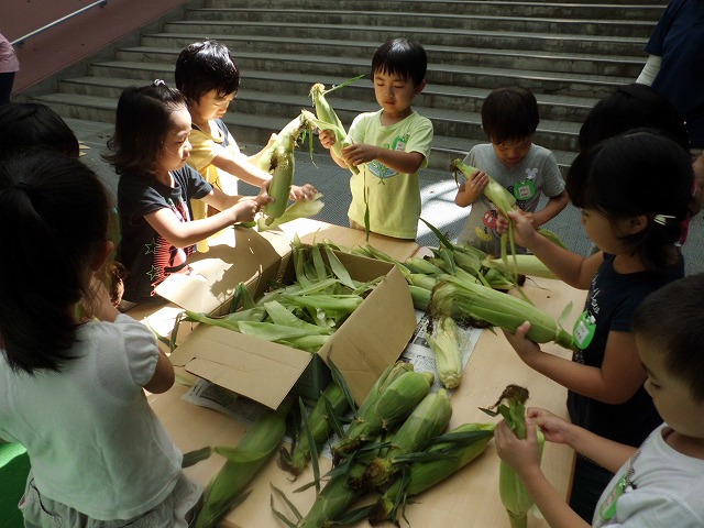 7月11日(金)、高円寺北子供園の年長さんが、とうもろこしの皮むきのお手伝いをしてくれました。