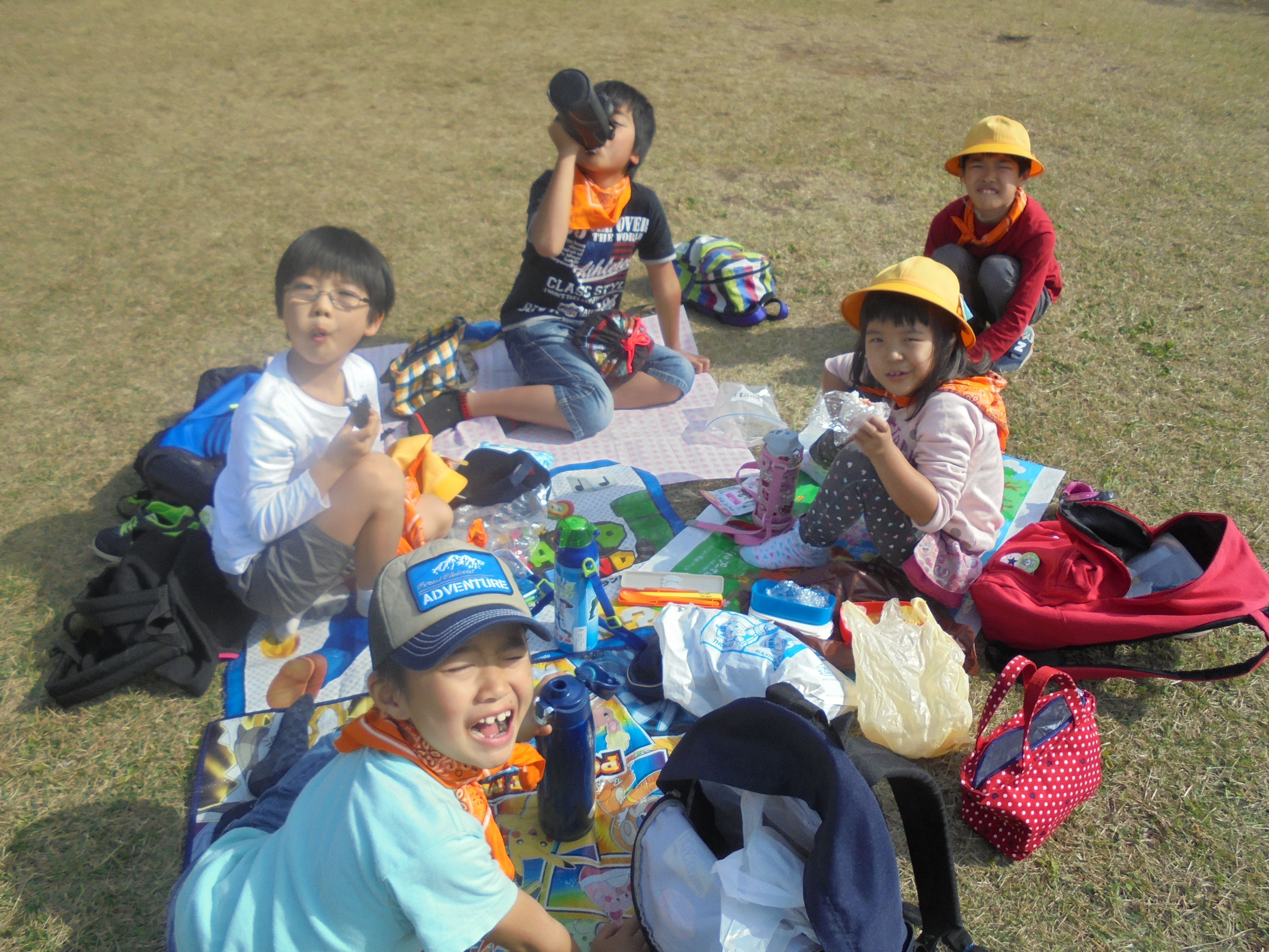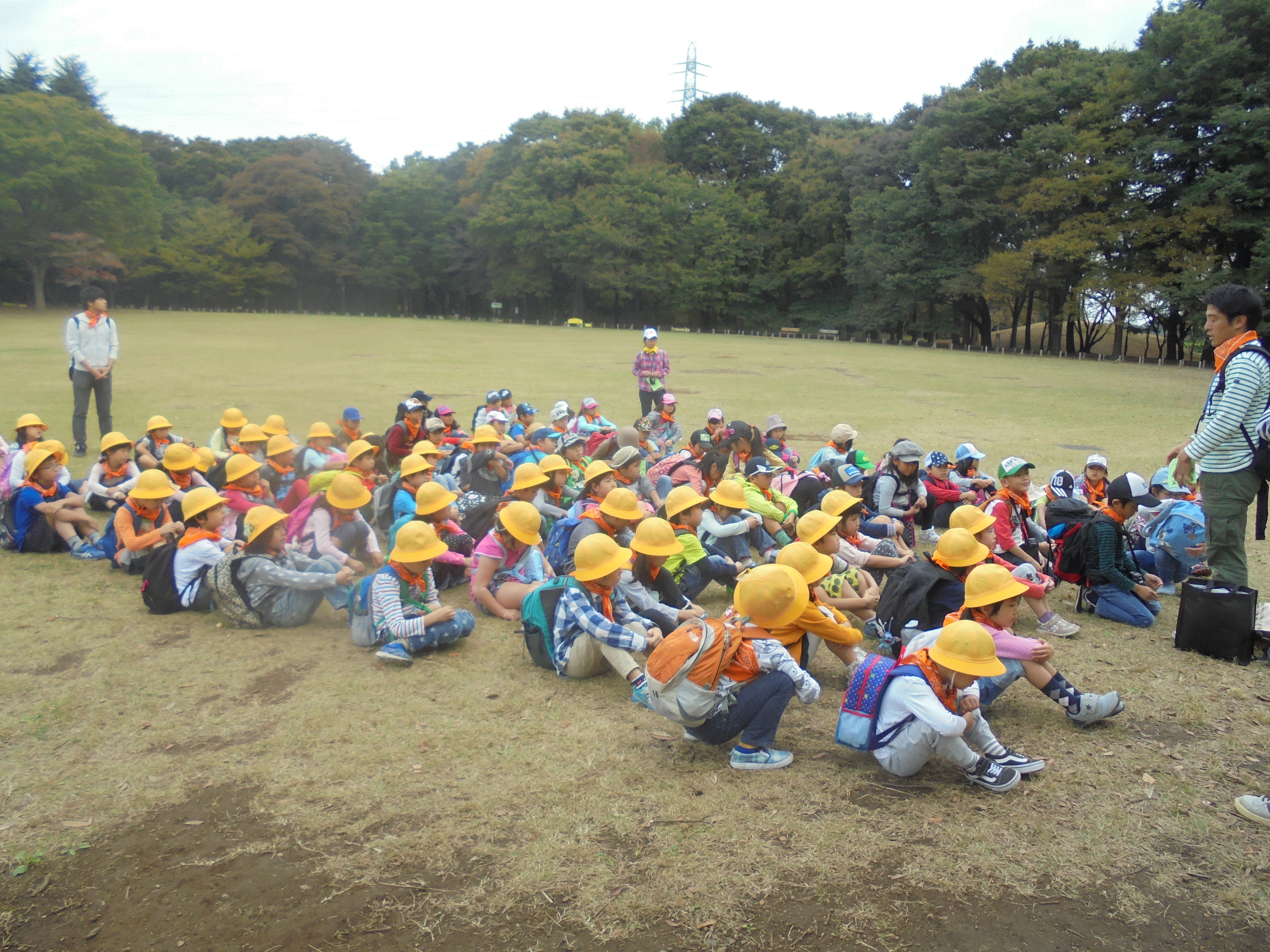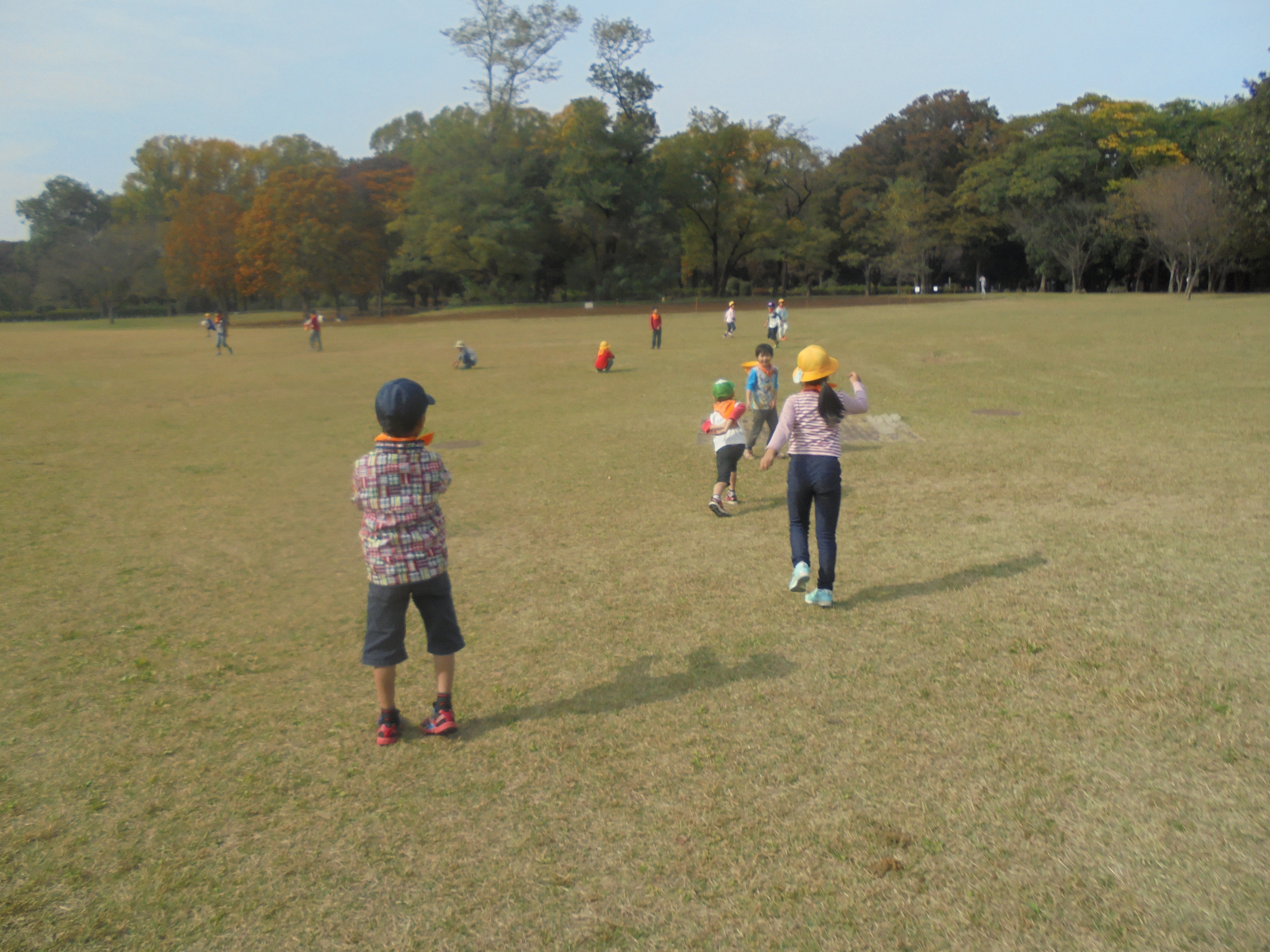 その後はたてわり班のお兄さんお姉さんたちと、広いはらっぱの中で自分たちで決めた遊びをしました。
