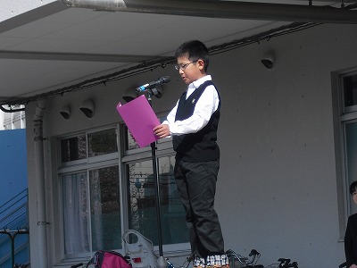 4月始業式では、最高学年として児童代表の言葉を述べました。