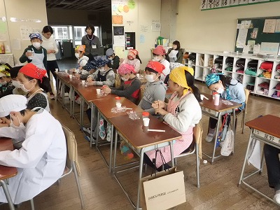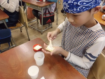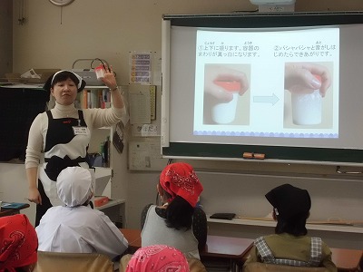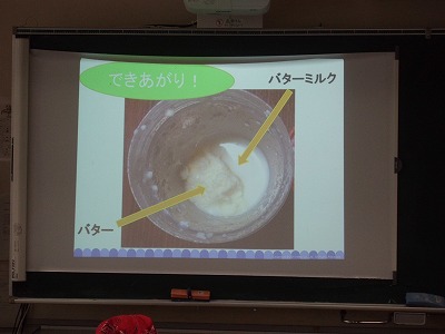 ミルク教室「骨って大切」・わくわく体験「生クリームからバターを作る」を行いました。