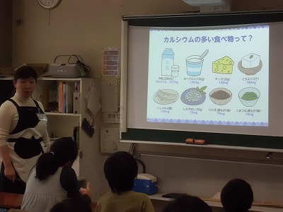 「骨の役割」「骨とカルシウム」「骨ができるのは小中学生のとき」「丈夫な骨をつくるには?」という内容でした。