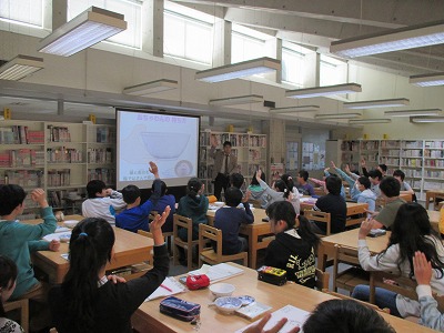 まず、3校時に図書室で6年生合同授業を行いました。