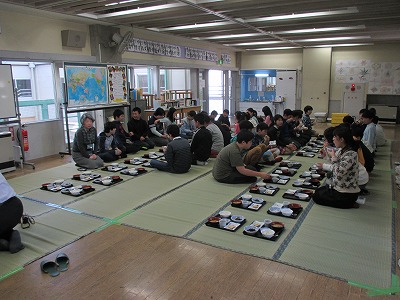 当日は、6年生保護者の方々に、ござ敷きや給食配膳のお手伝いをしていただきました。