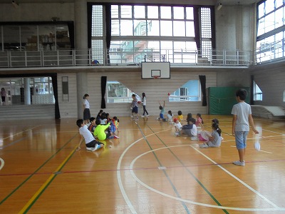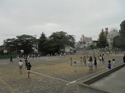 たてわり班ごとに、校庭、体育館、オープンに分かれて