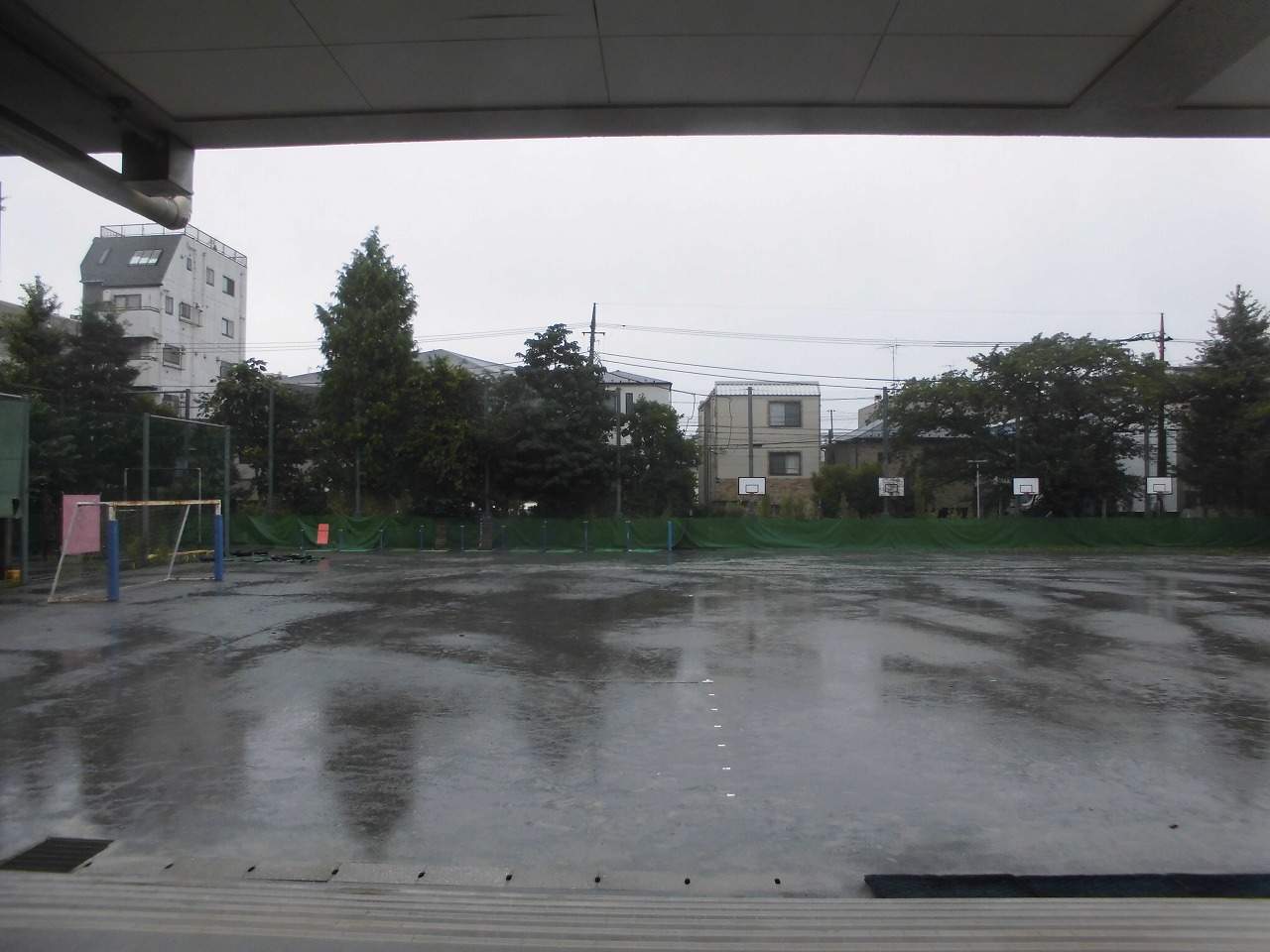 すでに校庭は水たまりです。