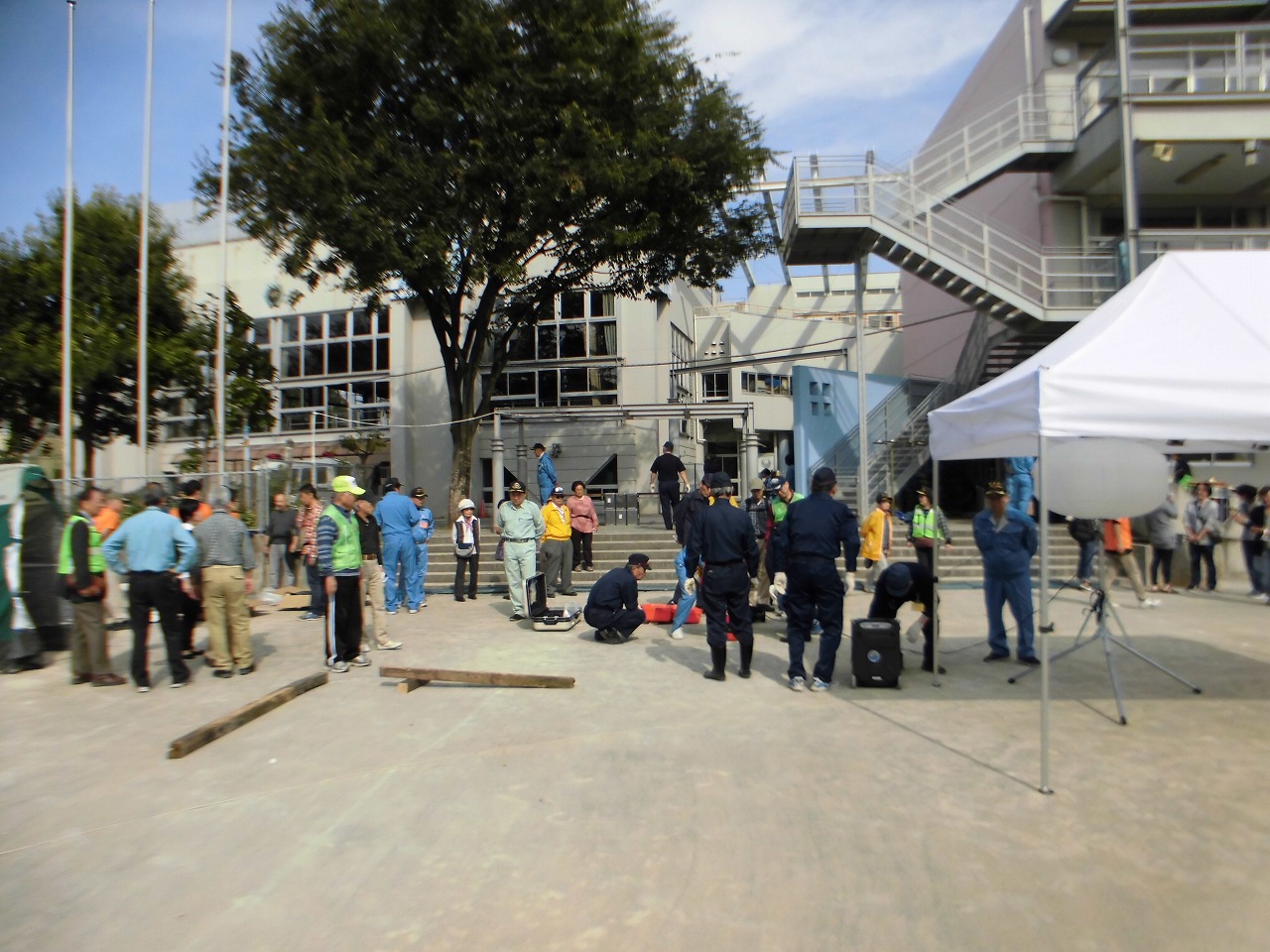 町会の皆さんとともに訓練を行いました。