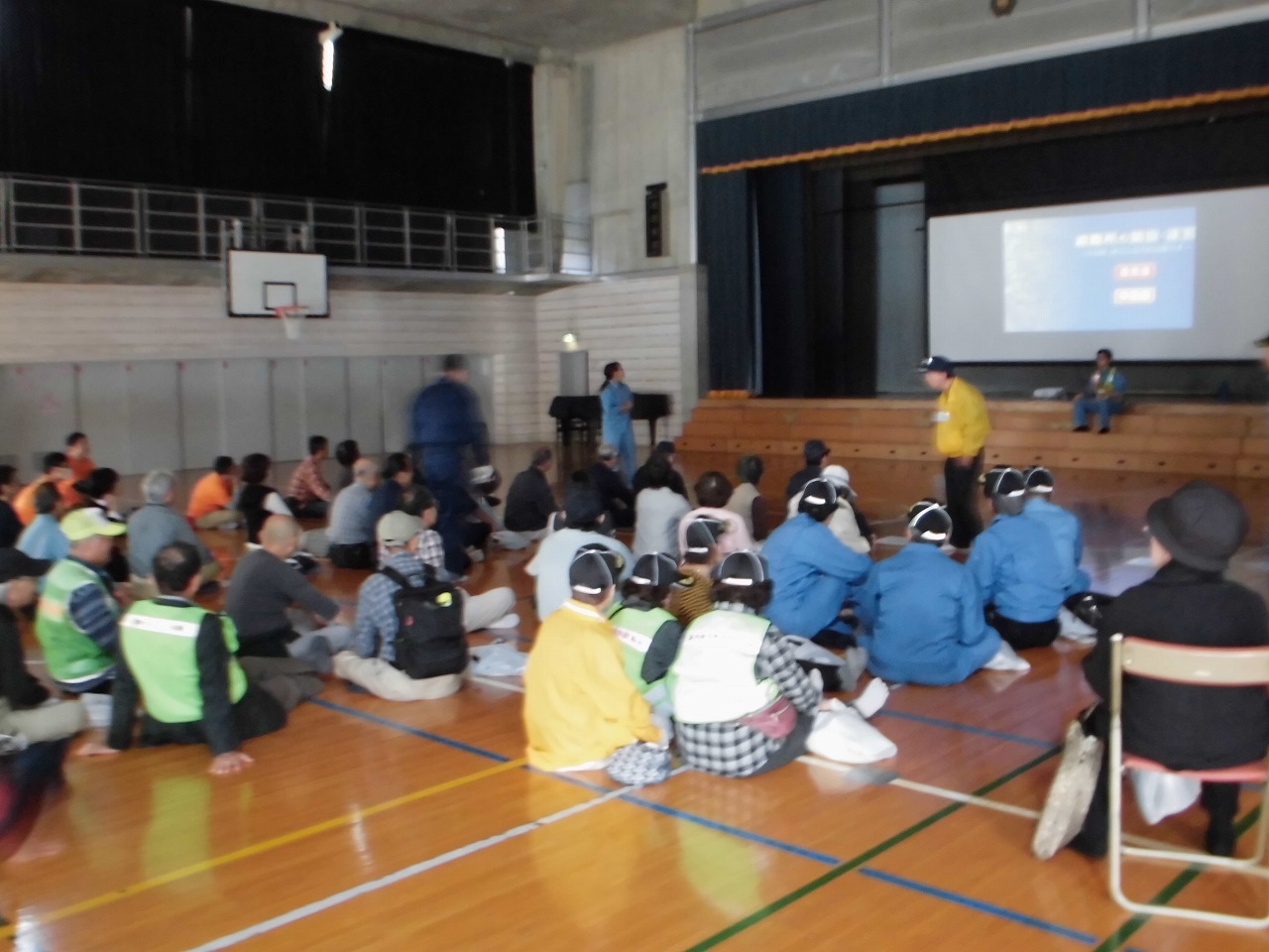 体育館でDVDを見た後、煙体験をしました。