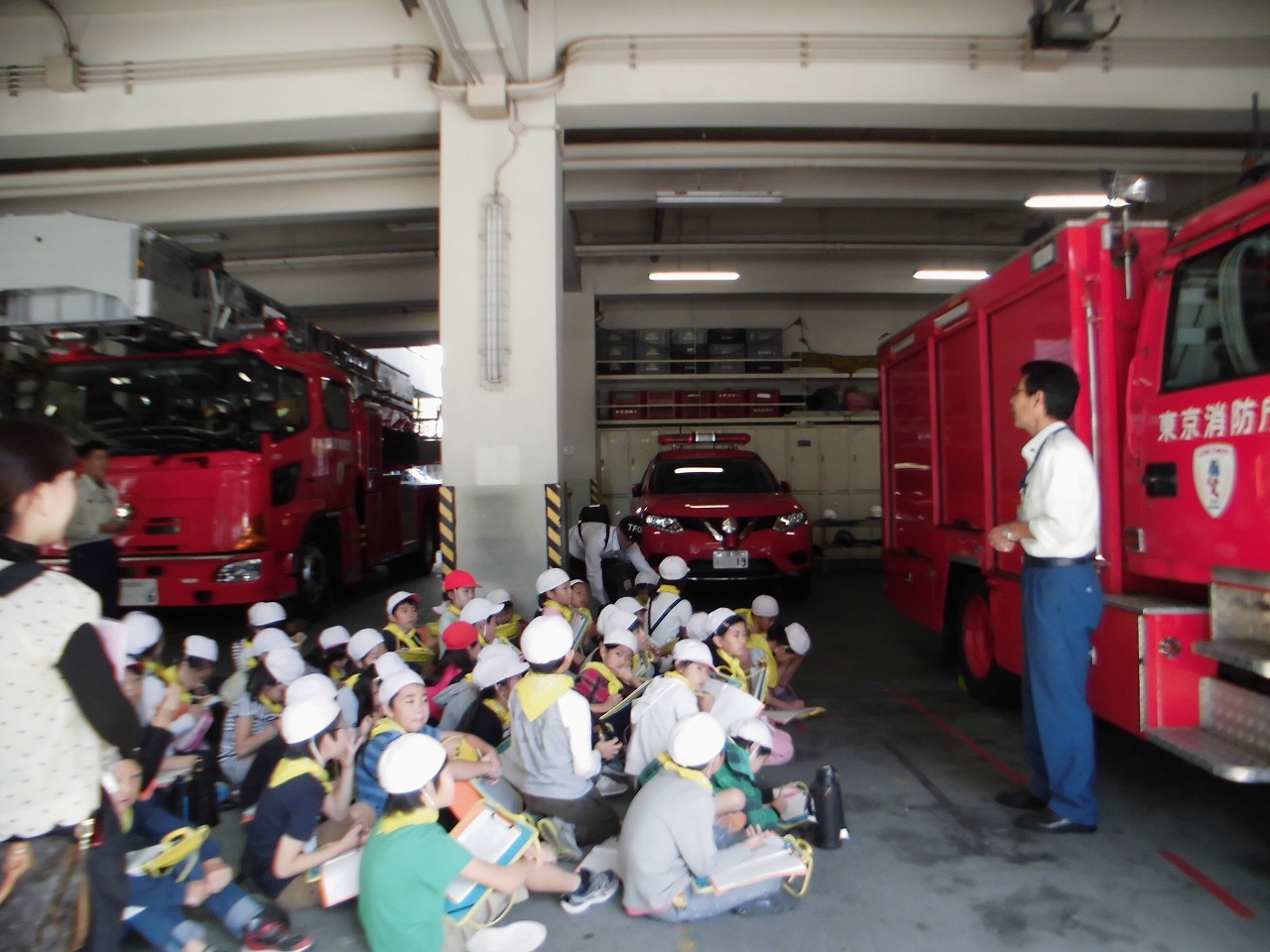 畑の見学、消防署見学、善福寺川取水施設の見学