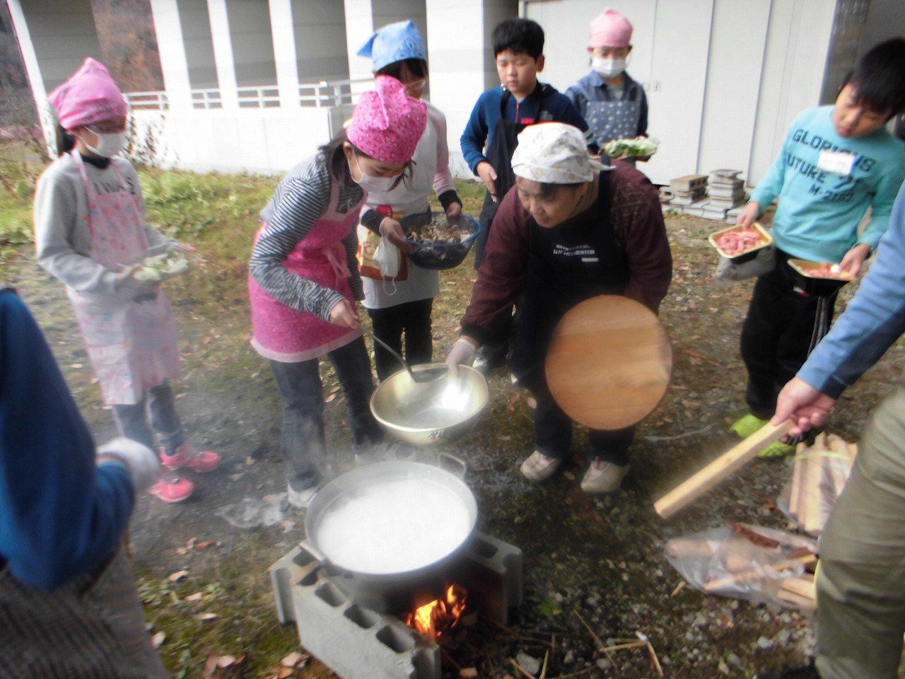 二日目は旧中津川小中学校の家庭科室と中庭を使い