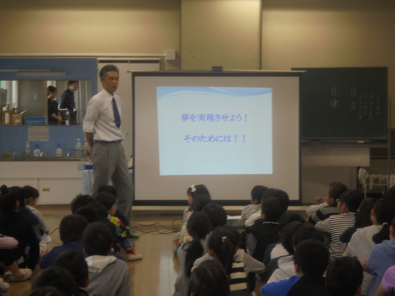 5,6年生は高円寺中の副校長先生に来ていただいて、将来に向けての話をしてもらいました。